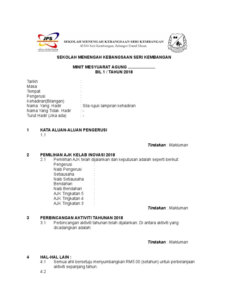 Contoh Format Minit Mesyuarat Agung 2018 Pdf